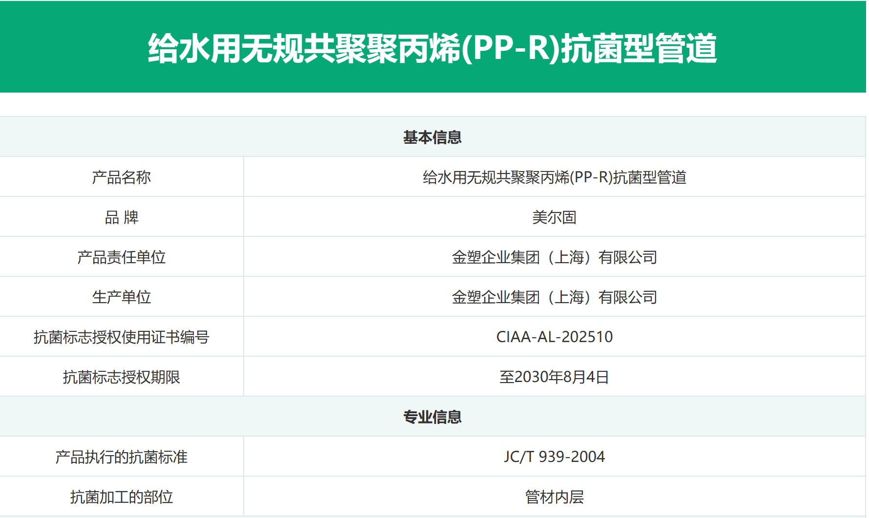 抗菌PP-R管性能引領(lǐng)業(yè)界追求,金塑企業(yè)集團(tuán)(上海)有限公司獲得抗菌標(biāo)志使用授權(quán)